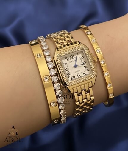 1901-GLD-BLK Band Women Watch STAINLESS STEEL