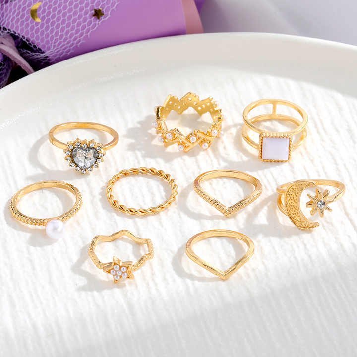9 pcs Elegant Vintage Gold Ring Set with different style
