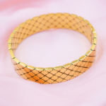The Bracelet features a stylish and modern geometric design. The surface of the bracelet resembles an interlocking grid of small squares, creating a three-dimensional and visual appearance. This geometric pattern gives the bracelet a touch of modernity and elegance, making it a distinctive and attractive piece, made of stainless steel plated with 18-karat gold