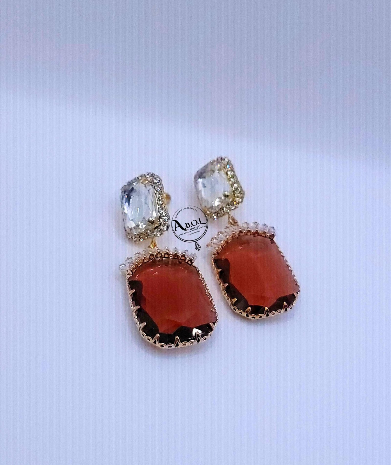 Add a touch of luxury to your look with these Glamorous Gold & Dual-Tone Crystal Earrings! Featuring sparkling white stones paired with rich amber-hued gems, set in an intricate gold-plated frame, these earrings are perfect for weddings, formal events, and evening glam. A stunning addition from Apna Bazaar Online Lahore (A.B.O.L) – where sophistication shines!