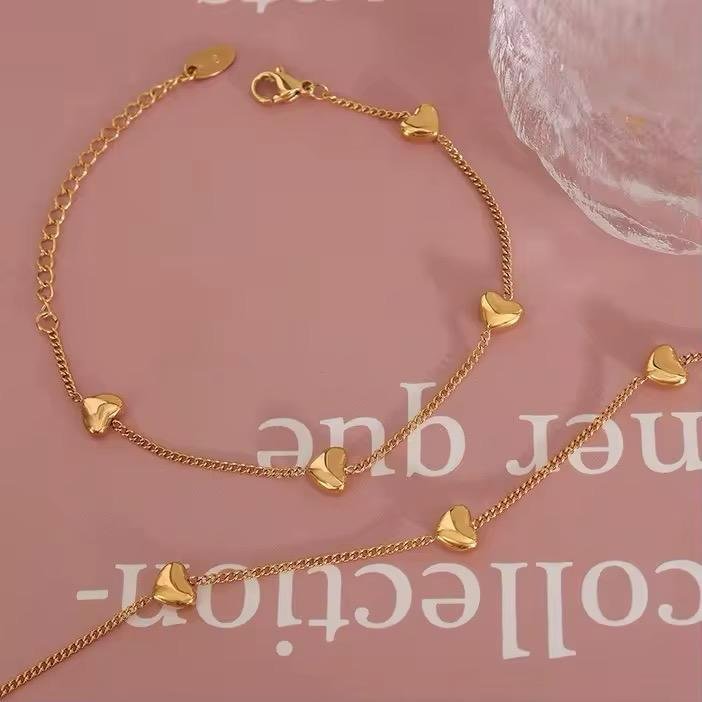 Love Me 18K Gold Plated Non-Tarnish Petite Heart Bracelet & Chain