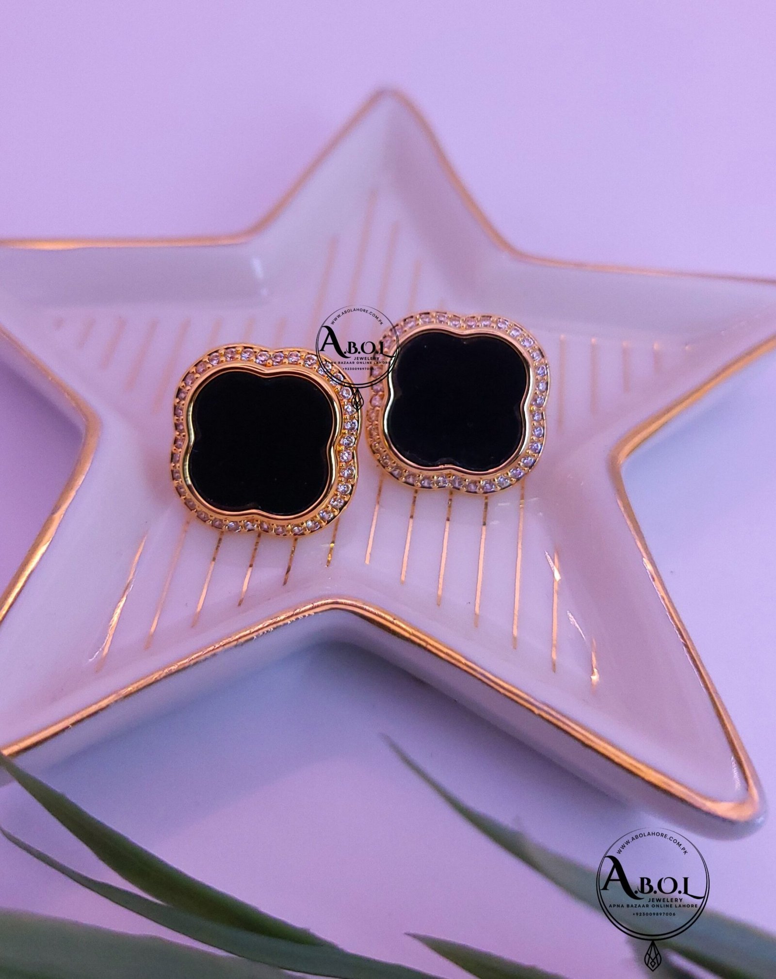 Be the first to review “Luxurious Gold & Black Clover Studs