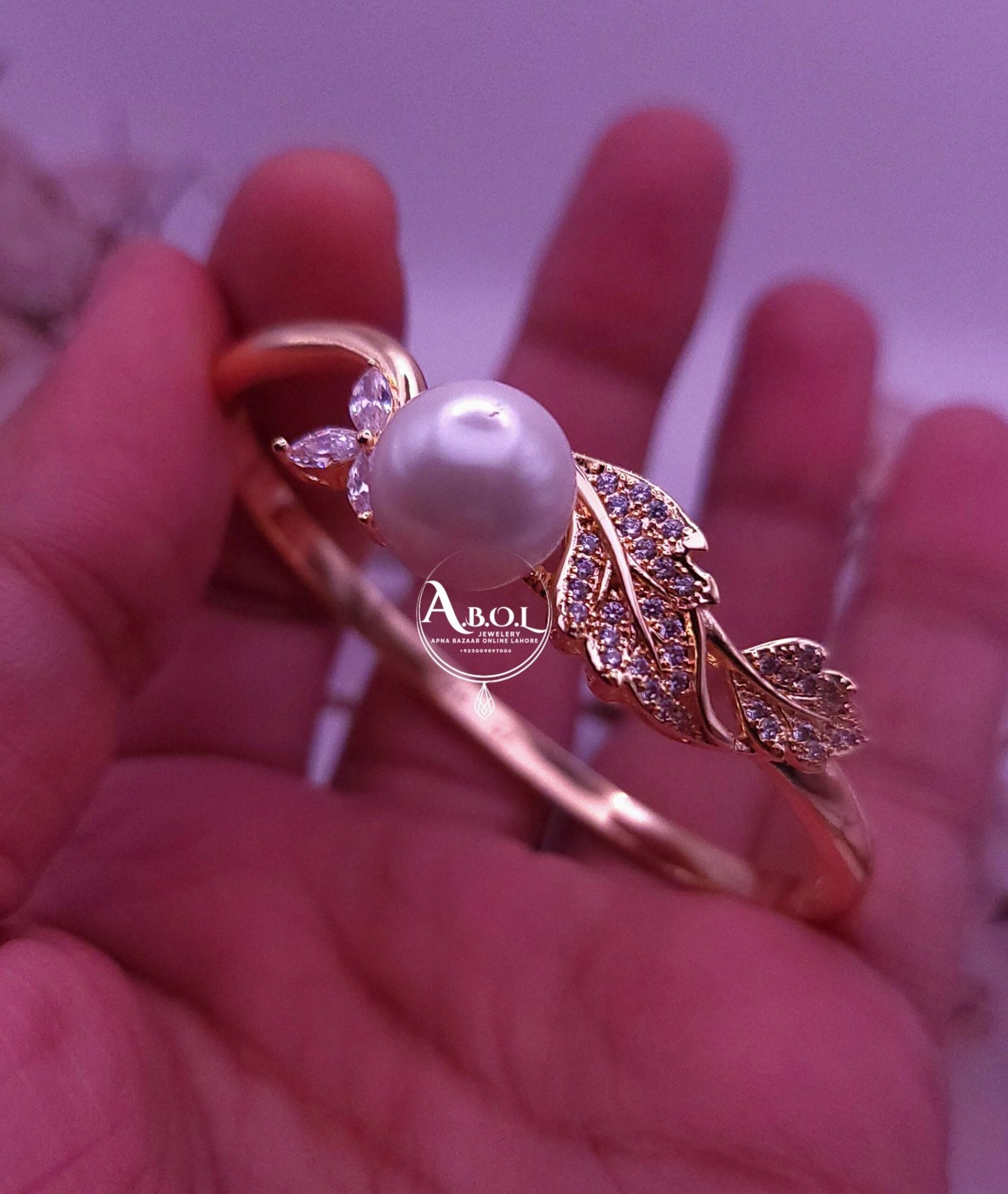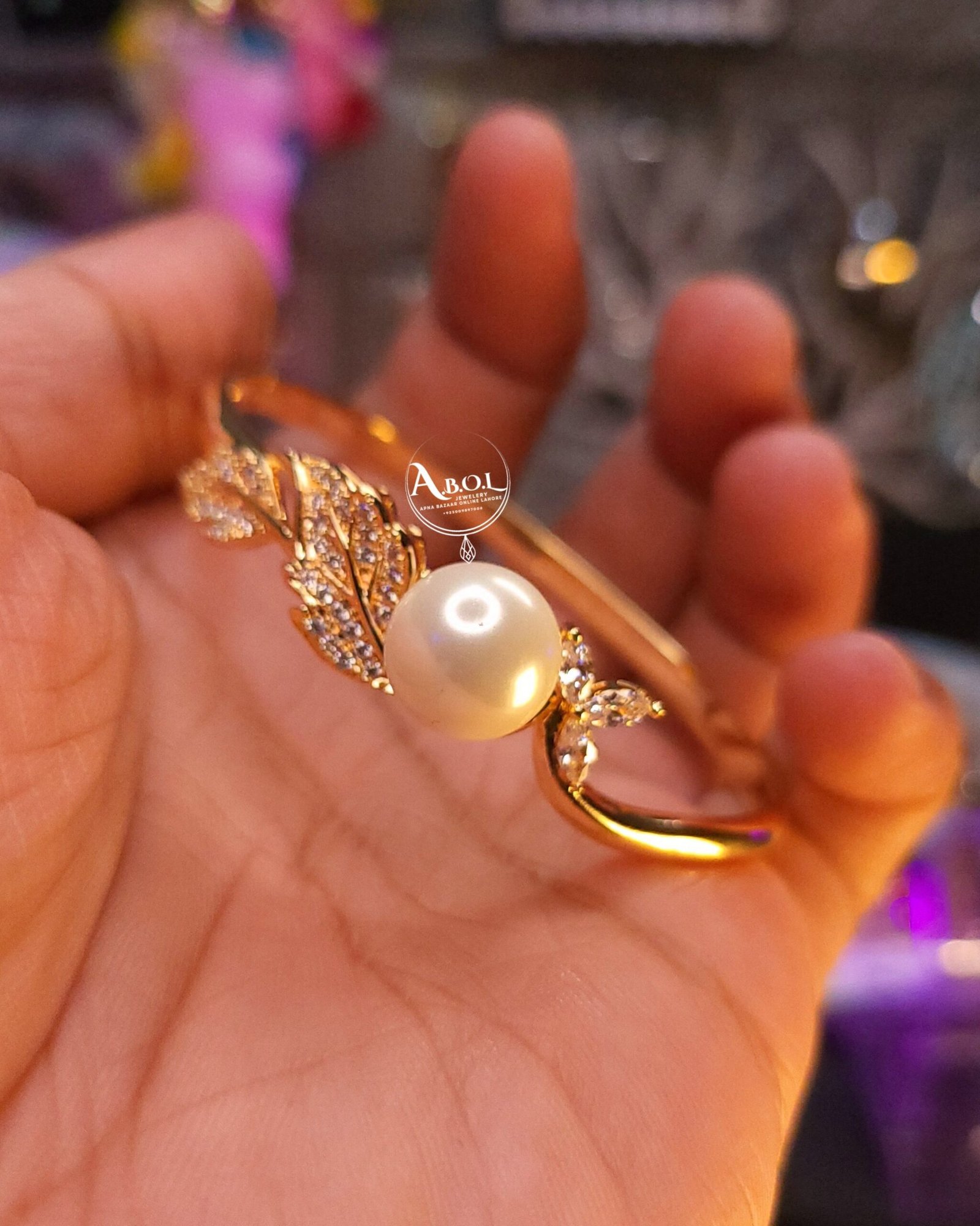 Delicate yet bold — this A.B.O.L gold ring features a radiant pearl cradled between shimmering leaf motifs. Each stone-kissed detail evokes nature’s quiet elegance, handcrafted to elevate every gesture with grace.