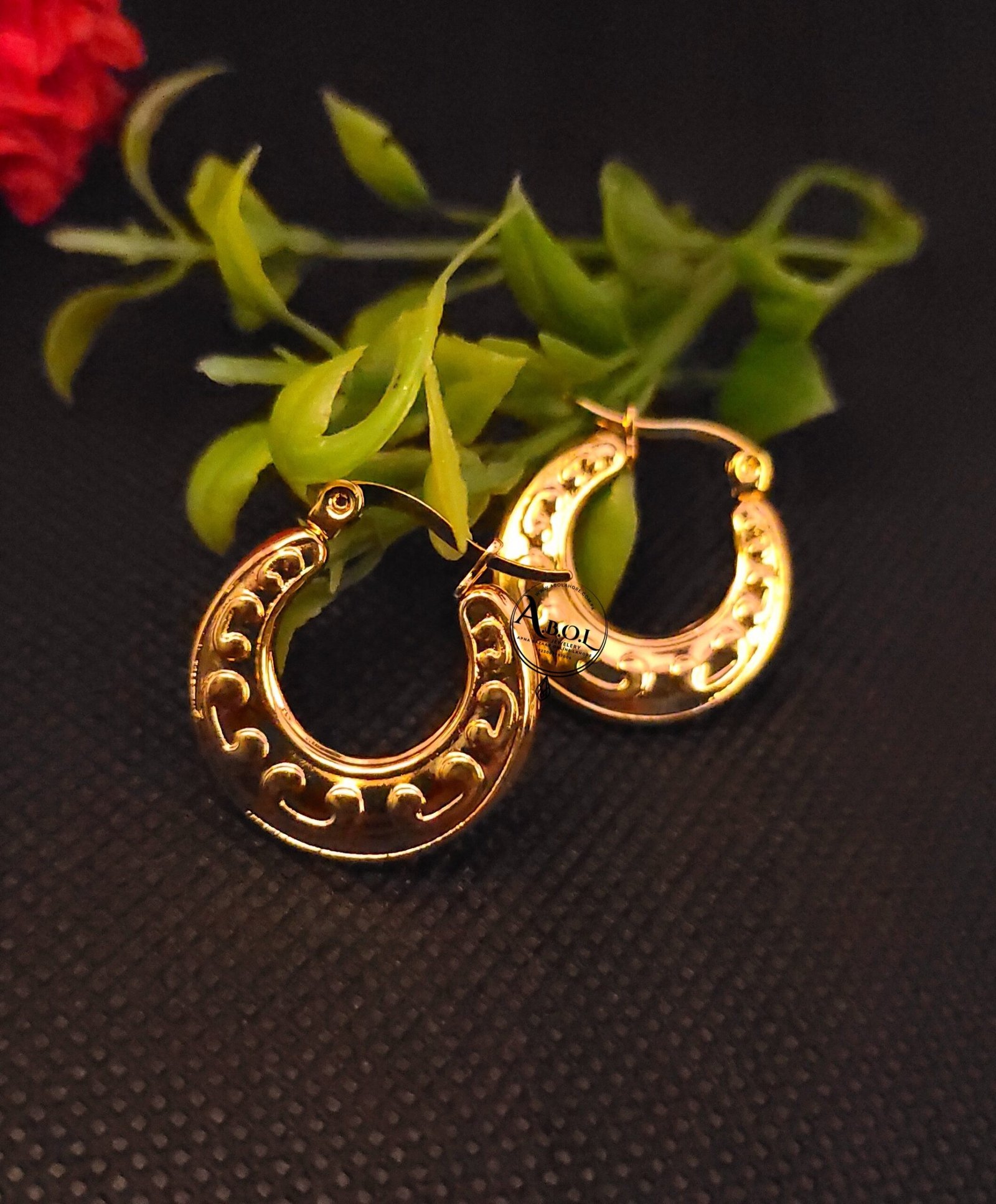 Engraved Gold-Tone Stainless Steel Hoop Earrings