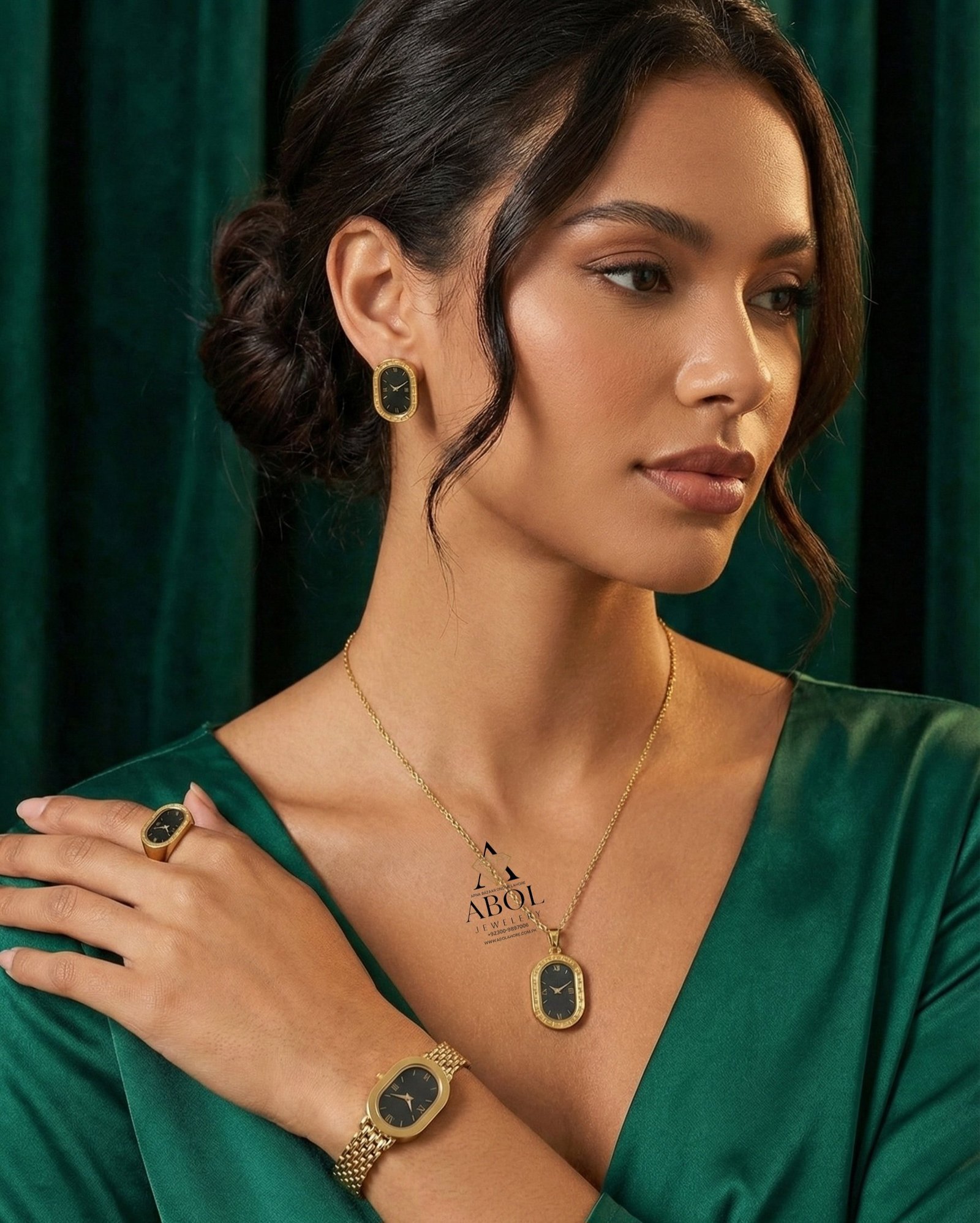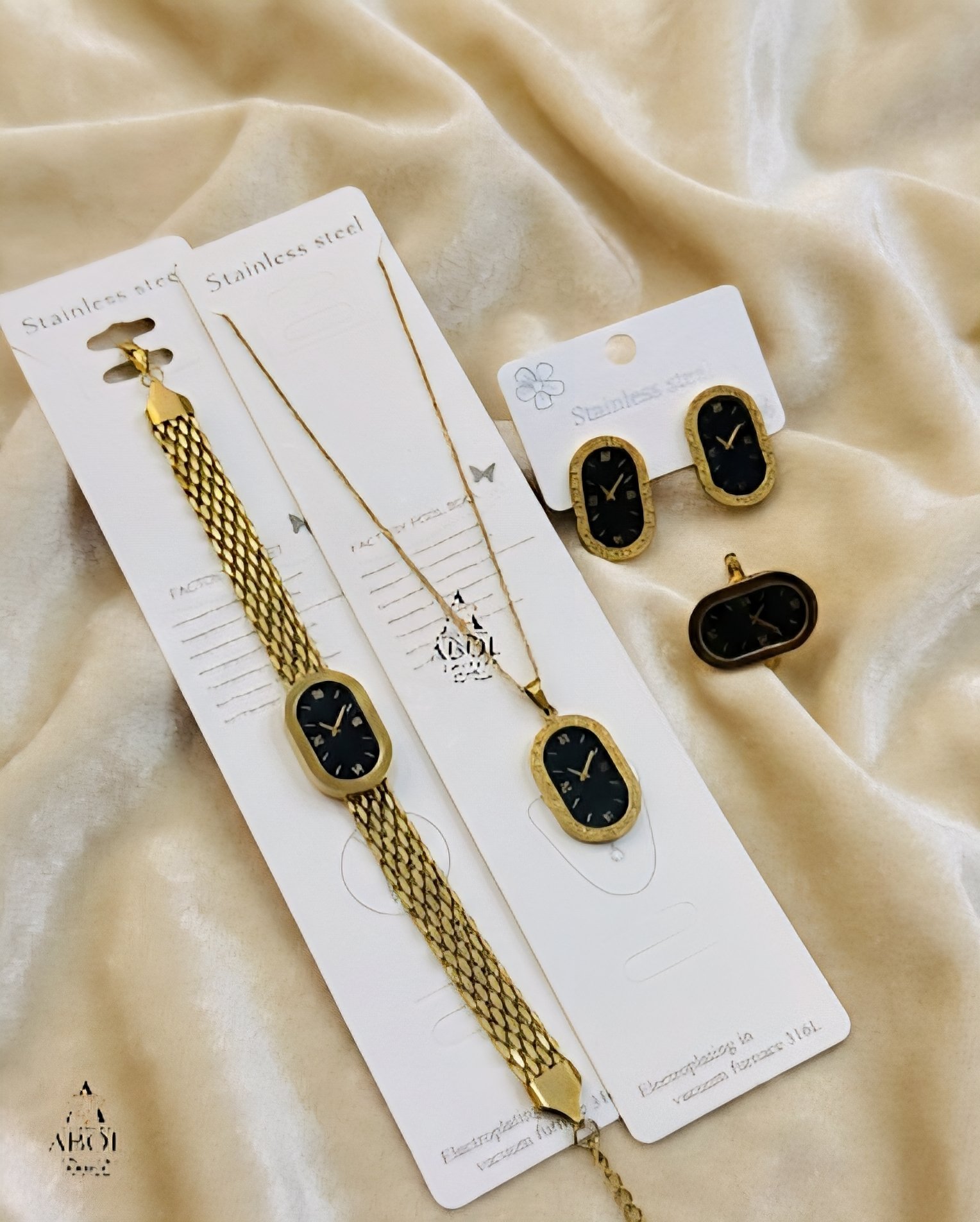 Roman Numeral Clock Face Gold Stainless Steel Jewelry Set ₨1,800.00