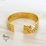Discover the sleek style of our Wide Geometric bangle bracelet. The sophisticated diagonal brick pattern design is ideal for fashion-conscious people seeking style and practicality.